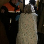 Пожилая женщина (75 лет, инвалид 1 группы) в 6 утра упала, сама встать не может. Рядом слепой супруг вызвал спасателей. Женщина замерзла и устала. Помогли.