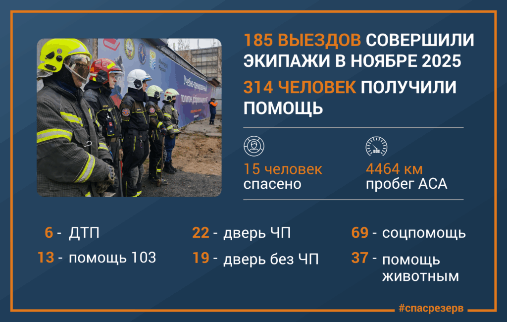 📊 #Статистика работы отряда СпасРезерв в Ноябре 2025 г. ⛑ Спасатели в цифрах: итоги месяца⬆️ В рамках проекта «Технологии добра» на страничке нашего сайта размещена ссылка на сервис сбора пожертвований.…