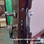 Дверь вскрыли без повреждений, отогнули язычок сломавшегося замка с помощью пластины для поиска ригелей.
