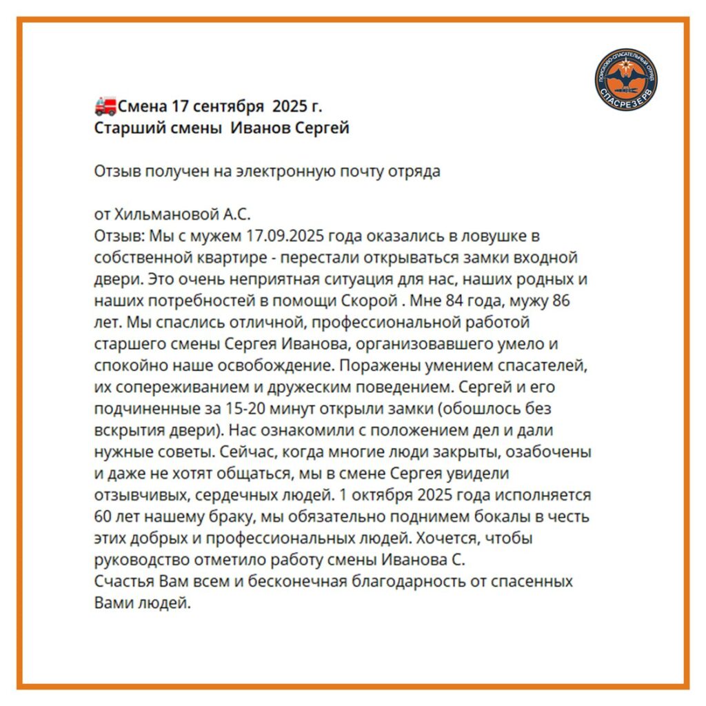 Благодарность экипажу Иванова Сергея. Смена 17.09.2025