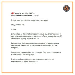 Благодарность экипажу Киселёва Степана. Смена 26.10.2025