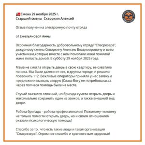 Благодарность экипажу Скворкина Алексея. Смена 29.11.2025