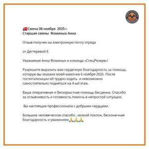 Благодарность экипажу Фоминых Анны. Смена 06.11.2025