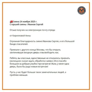 Благодарность экипажу Иванова Сергея. Смена 24.11.2025