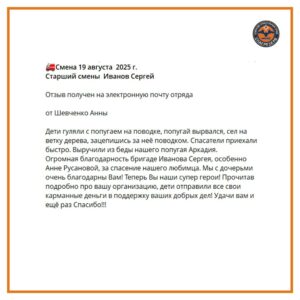 Благодарность экипажу Иванова Сергея. Смена 19.08.2025
